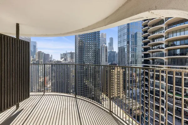 Experience Elevated Living at Marina City! Discover this stunning renovated one-bedroom condo perched high above Chicago! This sophisticated unit offers unparalleled southern views of the skyline and the Chicago River, with private balcony. Step inside to find modern upgrades, including brand-new flooring in the spacious Living Area, and updated Kitchen and Bath. The spacious living area seamlessly blends style and functionality, with floor to ceiling windows and door leading to private balcony. The updated kitchen showcases custom luxury 2" quartz countertops and backsplash, stainless appliances, shelving, and undermount lighting. Private bedroom features door to the Balcony. Updated Bath features 2" quartz counters and new lighting, Marina City offers an array of premium amenities, including 24-hour door staff and security, well-equipped fitness center, on-site market and dry cleaning, TWO incredible Rooftops with panoramic city views. Valet parking available for lease. Located just steps from the Chicago Riverwalk, Michigan Avenue, Millennium Park and Pritzker Pavilion, world-class dining including Legal Seafood, fabulous shopping and the Mag Mile, and nightlife like The House of Blues, this home places you at the heart of the city! With nearby access to CTA buses and the Red, Blue, Orange, Green, and Brown Lines, commuting is effortless. Investor-friendly with no rent cap, this is the perfect opportunity for a savvy investor or anyone seeking an extraordinary in-town residence. With very strong reserves, you'll enjoy peace of mind in this iconic Chicago landmark. Schedule your private showing today and make Marina City your next home!