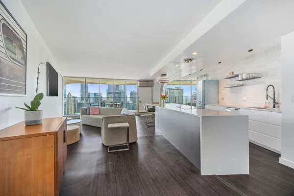 Exquisite and rarely available two-bedroom, two-bath residence in the iconic Marina City, offering coveted south-facing views over the river. This exceptional home features refined finishes and approximately 1,225 square feet of interior living space, plus an incredible 450 square feet of outdoor space-perfect for three-season living, dining, and lounging. If you enjoy entertaining, this is the ultimate space to watch the river dyed green and enjoy summer/New Year's eve fireworks - all from the comfort of your own spacious balcony. When you're not entertaining, drink in one of the best views in the city with your morning coffee (you can see both the Sears and the Hancock!). This truly perfect view doesn't come along very often. The kitchen is outfitted with high-end appliances, including a Smeg refrigerator, custom cabinetry, and spacious quartz countertops that are ideal for casual meals or entertaining. Abundant cabinetry provides excellent storage, complemented by multiple closets throughout the unit. Custom walk-in closet designed to accommodate an in-unit laundry setup.The home features two full bathrooms with showers, including a large walk-in shower in the primary suite. All major systems, including wiring, electrical, and plumbing, have been recently updated, there is truly nothing left to fix. Marina City offers an unbeatable urban lifestyle with a Walk Score of 99, placing world-class dining, coffee shops, bars, and grocery options-including a high-end convenience store within the building-just steps from your door. You're moments from all "L" lines, Metra stations, major bus routes, the Loop, North Michigan Avenue, and Chicago's vibrant nightlife. Building amenities include a fitness center, package room, conference room, and 24-hour security. The association is financially strong, with over $10.3 million in reserves as of September 30, 2025.